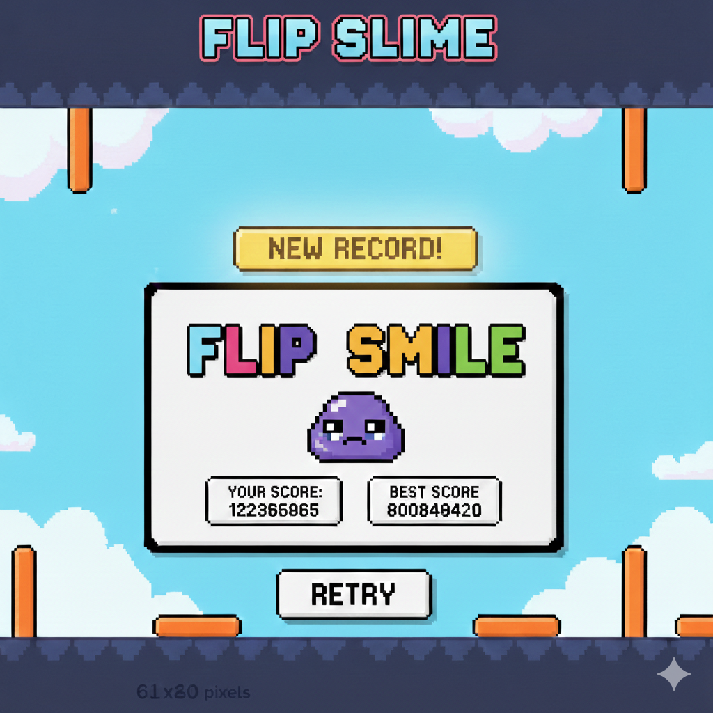 An action-packed 2D arcade game featuring a bouncy slime protagonist, realistic clouds, and addictive gravity-flipping mechanics. Dodge obstacles and beat your record as it gets faster every 10 points!
